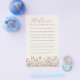 Designat för att kännas som en mjuk våräng i full blom, inbjuder detta eleganta rådkort gästerna att dela uppriktiga önskningar och små visdomsord. Den flytande skriften och luftiga rosa blommorna skapar en varm, sentimental touch – en vacker souvenir som blivande föräldrar kommer att värna om långt efter firandet.