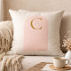 Feminine minimalist accent in soft ivory, featuring a centered blush arch and refined gold serif monogram. Designed for women who love neutral decor with subtle detail, this throw pillow brings balance to bedrooms, reading chairs, and curated living spaces.