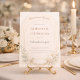 Blush neutral arch design with soft botanical accents and layered line framing, featuring a refined table setting with glassware and place setting detail. Designed for retirement dinner gatherings and formal evening celebrations in an elevated, coordinated setting.