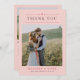 Looking for a double sided wedding thank you card with a simple classical design that still stands out? Personalize this flat photo wedding thank you card with two of your favorite photos from your magical wedding day. Write a thank you message on the back to thank all your friends and relatives who joined you as you took your first step toward your wonderful future together, or keep the pre-written thank you message. All text is customizable for easy personalization. The card is designed in colors of blush pink, dusty raspberry red, and dark mole gray for a soft and warm look framing your beautiful wedding photos.