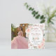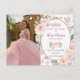 Anpassa detta eleganta blush blommiga roséguld Quinceañera / Sweet 16 födelsedagsbild spara datum postkort enkelt och snabbt. Klicka bara på anpassa det ytterligare knappen för att redigera texterna, ändra teckensnitt och teckensnittsfärger. Med utsökta akvarell blush blommor, fjärilar och en roséguld kantad oval yta för att lägga in alla viktiga festdetaljer. Matchande artiklar finns tillgängliga i butiken. (c) Somerset Fine Paperie