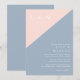 Denna dammiga blå och rosafärgade minimalistiska, eleganta bröllopsinbjudan kan anpassas med din information i modern typografi. Designad av Thisisnotme©