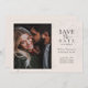 Announce your engagement with this wedding save-the-date featuring a simple, modern, and elegant design. Soft blush floral garden accents frame your personalized photo, while classic calligraphy script typography adds a timeless, classy touch. Perfect for couples seeking a refined yet contemporary look, this save-the-date creates a beautiful first impression for your wedding celebration.