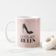 Blush Glitter Boss Lady Rules Personalized Coffee Mug. One side of our custom blush glitter coffee mug displays the Boss Lady Rules logo with stiletto high heel. The other side features example text "Meghan is a boss lady and everyone knows Boss Lady Rules". A motivational coffee mug for your office or a thoughtful present for a boss lady woman entrepreneur on your gift list. The name and tag line text can be easily revised on the personalization template