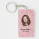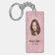 Blush pink Glitter hair salon elegant script photo Name keychain