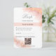 Elegant blush and gold watercolor wedding RSVP card featuring a modern QR code for easy online replies. Includes traditional response options with space for guest names and attendance, perfect for couples who want a seamless blend of classic and digital RSVP.