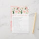 Dessa bedårande Vem Känner Bruden Bäst-kort är en rolig aktivitet på bröllopsfesten. Dela bara ut dem under bröllopsfesten där gästerna kommer att ha kul att svara på frågor om den blivande bruden! Den som har flest rätt vinner! Designen har vackra rosa akvarellblommor med falska guldglitteraccenter. Koordinerande rosa kalligrafi och kolgrå text kompletterar den vackra blomsterdesignen.