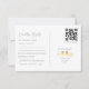 Modern rosenskiftande och vit bröllops-RSVP-postkort med guldpräglade kärleksfåglar, en skannbar QR-kod för digitala svar, måltidsalternativ och en minimalistisk layout. Detta eleganta svarsbrev erbjuder ett stilrent och bekvämt sätt för gästerna att svara. Matchar vackert med romantiska eller hösttemade bröllopssviter.