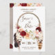 Din bohemiska fest kan vara rustik och elegant på samma gång. Denna vackra "Save the Date"-design har det bästa av två världar. Med vackra akvarellblommor i rosablommig rosa, burgunderröd och delikat persika som pryder en bohemisk drömmfångare med fjädrar och blommor, kommer denna design säkert att väcka dina gästers förväntan inför den stora dagen. Matchar andra designs i vår butik för att skapa en komplett serie och är helt anpassningsbar för alla tillfällen! Kan användas för bröllop, födelsedag, bröllopsfest eller baby shower, examen eller någon annan stor händelse!