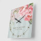 Blush Peony | Sage Green Gold Elegant Gift Fyrkantig Klocka