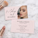 Modern stylish Blush Pink Black Script Photo Makeup Business Card with trendy script.