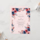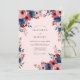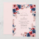 This design features a soft blush pink background adorned with vibrant navy blue and deep red watercolor blossoms. Romantic roses and dark-centered anemones create a moody yet elegant aesthetic for a seasonal event. Delicate leaves and floral sprays border the composition, offering a lush and artistic botanical feel.