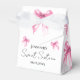 Elegant Sweet Sixteen Birthday Party Favor Box template w/ a watercolor coquette bow & modern typography script.