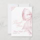 This elegant invitation features a charming blush pink bow and rustic lace ribbon.