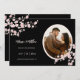 This Save the date card features beautiful dusty pink cherry blossoms and a custom photo on a black background.