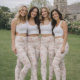 Celebrate the bride-to-be with a romantic English village wedding design in soft blush pink tones. Hand-painted stone cottages, a charming village church, floral garlands, teacups, wedding cakes, and a horse-drawn carriage are arranged in a repeating watercolor layout inspired by traditional countryside celebrations. The gentle blush pink base is balanced with cream, sage green, and warm neutrals, creating a nostalgic yet elegant look perfect for bachelorette parties, bridal weekends, hen celebrations, and coordinated bride squad outfits.