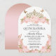 Blush Pink Floral Gold Tiara Quinceanera Arch Inbjudningar