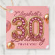 Celebrate a milestone thirtieth birthday in glamorous style with these elegant blush pink and gold thank you tags. Featuring a stunning 3D gold number 30 filled with sparkling pink rhinestones and jewels, surrounded by festive rose gold and blush balloons. Perfect for adding a luxurious touch to your party favor bags, gift boxes, or guest treats. The elegant burgundy script allows you to effortlessly edit the name, making it a beautiful, customized keepsake for a woman's chic 30th birthday celebration.