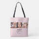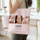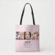 Blush Pink Modern Script 3 Photo Makeup Studio Tote Bag with Logo - Perfect for carrying makeup and tools to clients to promote your brand, and also a great option for a customer loyalty swag bag. The blush pink background pairs perfectly with the bold modern font and elegant script typography for your name, with 3 customizable model photos to showcase your work, plus space for your logo. This fully coordinated design will help your brand look as professional and flawless as your work.