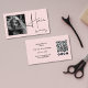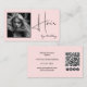Blush Pink Photo Black Script Hair QR Code Social Visitkort