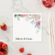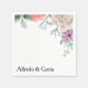 The clean white background keeps the design fresh and airy, while the classic serif typography adds an elevated, graceful feel. Perfect for cocktail hour, bar service, dessert tables, and reception lounges, these personalized napkins enhance your décor with subtle floral charm.