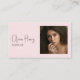 A makeup artist business card featuring your photo on the front with an elegant script name, paired with blush pink on the back for a soft, feminine finish. Clean, left aligned typography keeps the design modern and easy to read while presenting your brand with a polished, approachable feel.