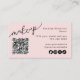 Blush Pink Black Script Social Icons QR Code Photo Makeup Business Card.