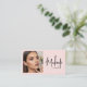 Blush Pink Script Social Icon QR Code Photo Makeup Business Card. Make a flawless first impression with this blush pink makeup business card featuring a clean, modern design, modern, trendy black script typography, your QR code and optional social media icons. A photo or image adds a professional and personal touch, perfect for showcasing your work, brand style or beauty services. The soft blush pink background paired with black script creates a fashionable, feminine aesthetic ideal for makeup artists, beauty influencers, estheticians, lash stylists and glam professionals. Fully customizable, this business card lets you change the colors and add your name, title, contact details, website, social media handles, etc. to create a chic and memorable brand identity.