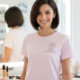 Blush Pink Script Staff Name Business Logo Makeup T Shirt