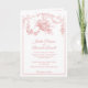 This elegant wedding invitation features a delicate blush pink Toile de Jouy–inspired illustration with romantic florals, birds, and ornamental framing. Designed in a refined French vintage style, it evokes timeless Parisian charm and classic sophistication.