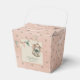 Elevate your whimsical celebration with this charming baby shower favor box. It features a delicate watercolor baby romper hanging beneath soft pastel bunting against a classic polka dot backdrop. Perfect for gifting sweet treats or small mementos to guests at a girl's new baby arrival party.
