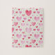 Celebrate love and light with this charming and sophisticated puzzle design. This seamless pattern showcases hand-painted hearts in a beautiful range of pinks and deep reds, from soft blush and petal pink to vibrant raspberry. Every watercolor heart is unique, complemented by a dusting of shimmering gold glitter dashes and metallic specks that dance across the off-white, textured background. The combination of soft, bleeding watercolor edges and the sharp sparkle of gold makes for a rhythmic, joyful assembly experience that is as elegant as it is sweet.
