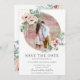 Framhäva ditt förbröllopsfoto med detta boho-chica spara datum fotokort. Med vackra akvarell blush dammiga rosa rosor och vallmo samt eukalyptusgrönska. Designad för att matcha vår brölloppskollektion Cherise. Anpassa den med dina detaljer enkelt och snabbt, tryck bara på knappen anpassa för att ytterligare ändra och formatera stil och placering av texten.