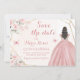 Blush Rosa Guld Blommig Flicka Quinceañera Spara Datum Kort