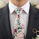 Romantic watercolor floral tie with soft blush pink and mauve roses paired with delicate eucalyptus leaves and baby's breath on a light cream background. The pattern has a gentle, natural elegance that's perfect for weddings — refined enough for the groom or groomsmen, yet soft and beautiful for any formal occasion.