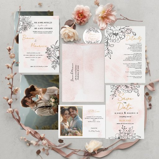 Blush & Black Floral Elegance Wedding SuiteDesignad av Paola Garcia Broeders