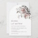 This elegant contemporary arched wedding invitation features 3 dimensional blush and white flowers and shadows.