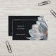 This elegant luxury business card features a silky white magnolia flower with a blush shimmer on a black background.