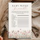 Det här spelet föddes ur en klotterbild av mjuka rosa blommor och en “vad om vi gjorde det smart?”-stund. Det eleganta ordspeglet får gästerna att skratta, gissa och tävla mot klockan – medan de känsliga ängsblommorna ger din festbord en drömlik och luftig “baby på väg”-känsla.
