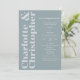 Denna fantastiska bröllopsinbjudan är perfekt för par att tittar ett modernt och snyggt sätt att tillkännage sin speciella dag. Inbjudan innehåller en mjuk, dammblå bakgrund med elegant light grått-skrivning, medan briden och brudgummens namn står ut med ett fet och öga-infångande teckensnitt nedåt. På baksidan kan man lägga till ett foto av paret lycklig för att göra inbjudan ännu mer personlig.