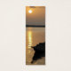 Ett litet bokmärke med romernas välsignelse 15:13, bild av en soluppgång över sjö, båt vid vatten.