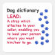 Lexikon för Hundar LEAD: Ett band som binder till krage och som gör att du kan leda din person dit du vill att han eller hon ska åka. Hund lexikon om den skrivs av hund. Lilla Pearls av Wisdom för att få dig att le.