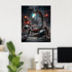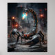 Mörk och skrämmande visar denna blypläterade skorpionkonstverk pansrade kroppssegment, nitade klor, en skärpt mekanisk svans, glödande ögon och tunga industriella texturer. När skorpionen kryper genom en bränd öken-skrotupplag av rör, stålrester, gnistor, damm och stormbelysta himlar utstrålar den fara och motståndskraft. Perfekt för spelrum, garage, kontor och manliga interiörer. Ett dramatiskt utsmyckningsdetalj för fans av skorpioner, industriell inredning, post-apokalyptisk stil och vilda mekaniska varelser.