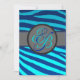 Blyblåa nyon-bröllopsinbjudningar i zebra ränder inbjudningar