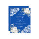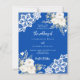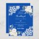 För en elegant och ett romantiskt bröllop. En koboltblå färgad med vit blommigt, ro och vit snöre. Anpassa och lägg till namn och information. 1 lakan = 1 inbjudan tryckt kant till kant.