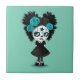Blyg day of the deadflicka med stora ögablått kakelplatta