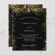 En modern inbjudan från elegant bröllop. Svart bakgrund dekorerad med faux guld glitter-gnistor. Anpassa och lägg till information om namn och bröllop. Vit färgad brev.