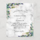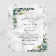 Marble print as bakgrund dekorerad med eukalyptus grenery och guldblad. Anpassa och lägg till information om namn och bröllop. Black brev.
