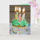 Många stripade födelsedagsljus i grönt-isbildning på cupkaka med färgstarka sprinkler för födelsedag