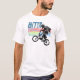 Den här versionen av vår BMX-design från 1986 har fått en utsliten åldras som tvättar ut att gälla för ytterligare äkthet. Du kan till och med berätta för folk att du har ägt din skjorta sedan 1980-talet! BMX-cyklerna var en stor slå på 1980-talet, och varje barn hade antingen en eller ville ha en. Vare sig det var tävla- eller freestylingtrick, gjorde BMX och dess unika egenskaper i form av stil, styrka och smidighet det till en mycket populär fråga. När filmerna hade BMX blev det ännu mer eftersökt. Filmen ET såg till och med att BMX-cyklar flög, även om försök att återskapa detta i verkligheten möttes av begränsad framgång. 1980-talets stil BMX-mästerskap 1986 är en perfekt för ett barn från 80-talet eller någon som minns tiden med underbar fondhet. Det är också underbart för dagens BMXers - även om de dagar då varje barn hade en borta, har BMXing som sport fortsatt och är fortfarande en hisnande demonstration av skicklighet och friidrott.